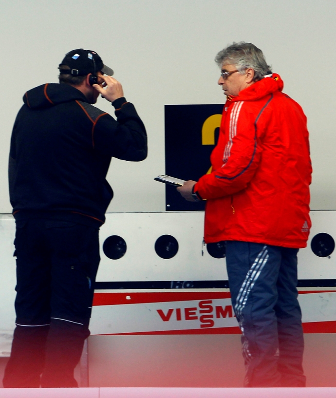 Судьи изучают установку, на которой у Уле Эйнара Бьорндалена не закрылась одна из мишеней. Ошибка техники стоила золота словенцам и принесла победу сборной Норвегии. / Фото: © Reuters -