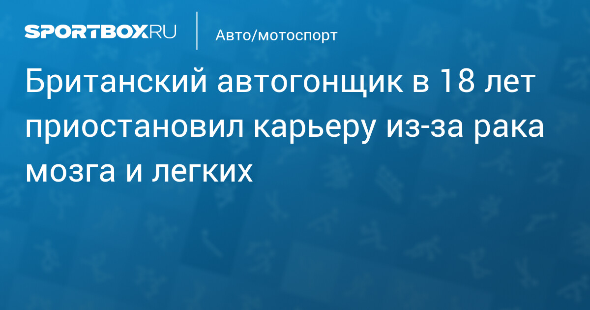 - Британский автогонщик в 18 лет приостановил карьеру из‑за рака мозга и легких