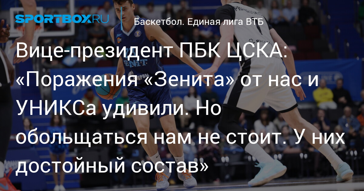 Вице‑президент ПБК ЦСКА: «Поражения «Зенита» от нас и УНИКСа удивили, но обольщаться нам не стоит. У них достойный состав»