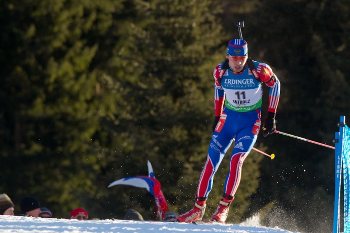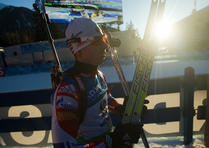 Иван Черезов в масс-старте Кубка мира по биатлону. / Фото: © Евгений Тумашов/ www.biathlonrus.com -
