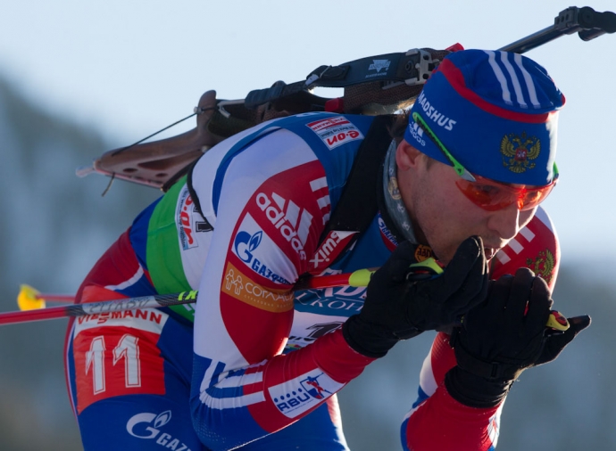 Россиянин Антон Шипулин в масс-старте Кубка мира по биатлону. / Фото: © Евгений Тумашов/ www.biathlonrus.com -