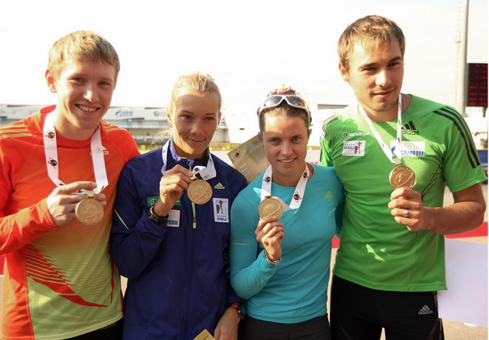Смешанная эстафета на чемпионате мира по летнему биатлону в Уфе завершилась победой сборной России. / Фото: © www.biathlonrus.com -