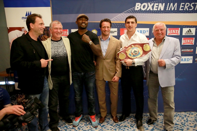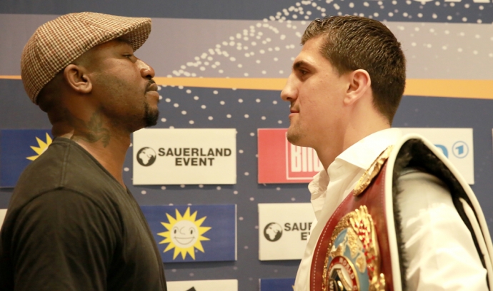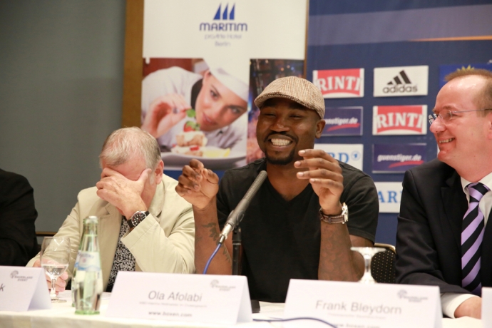 Состоялась официальная пресс-конференция перед поединком между чемпионом WBO в супертяжелом весе немцом Марко Хуком и временным чемпионом Всемирной боксерской организации британцем Олой Афолаби.