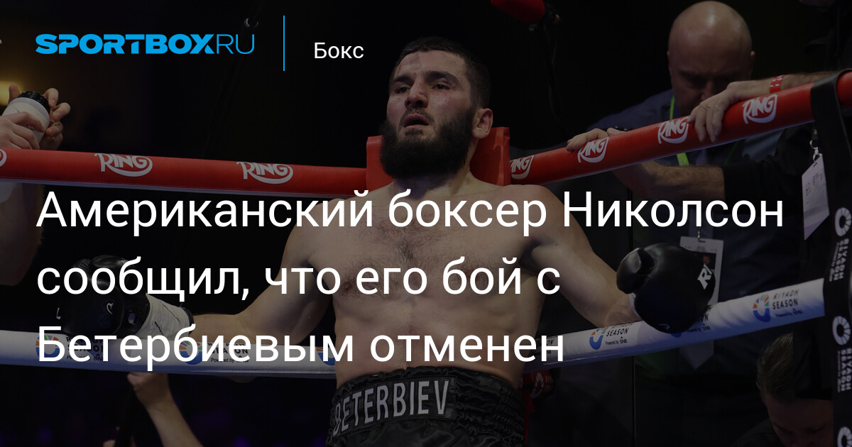 - Американский боксер Николсон сообщил, что его бой с Бетербиевым отменен