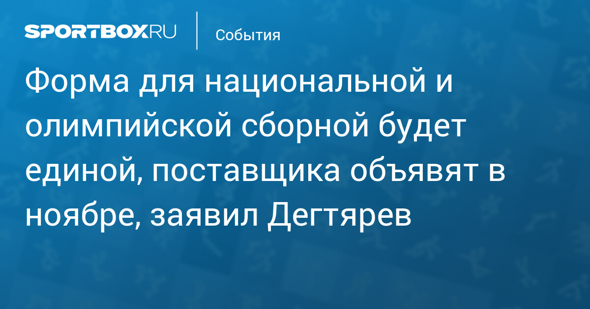 Форма для национальной и олимпийской сборной будет единой, поставщика объявят в ноябре, заявил Дегтярев