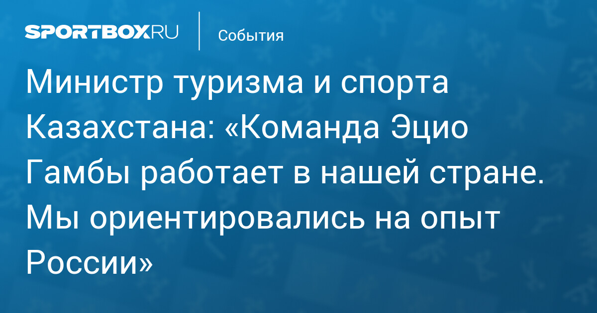 Министр туризма и спорта Казахстана: «Команда Эцио Гамбы работает в нашей стране. Мы ориентировались на опыт России»
