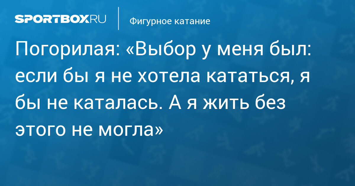 Погорилая: «Выбор у меня был: если бы я не хотела кататься, я бы не каталась. А я жить без этого не могла»
