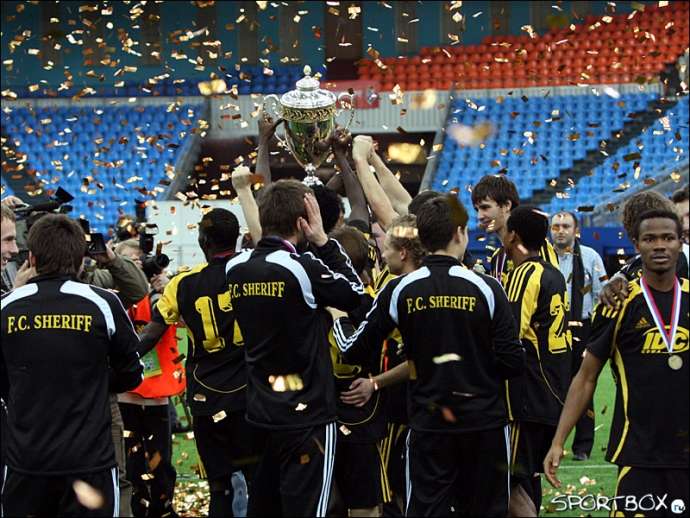 Фоторепортаж о финальном матче футбольного Кубка чемпионов Содружества стран СНГ и Балтии 2009. основное время матча закончилось вничью 1:1, а в серии пеналти удачливее оказалась команда Шериф, реализовавшая все свои попытки - 5:4. Фото Егор Чичкин