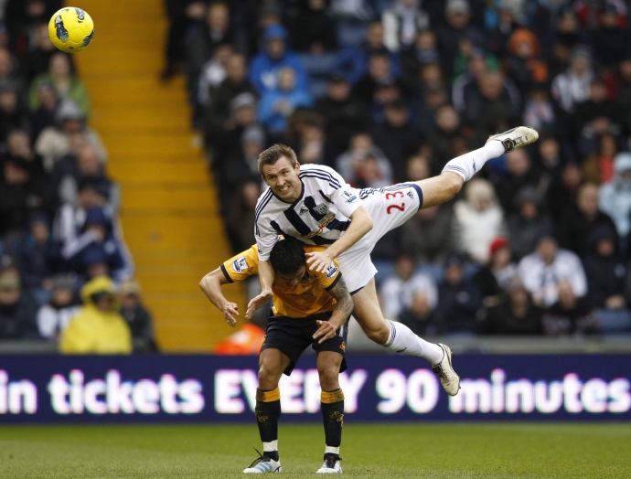 Защитник "Вест Бромвича" Гарет Маколи и полузащитник "Эвертона" Тим Кэхилл. Счёт матча 0:1. / Фото: © Reuters -