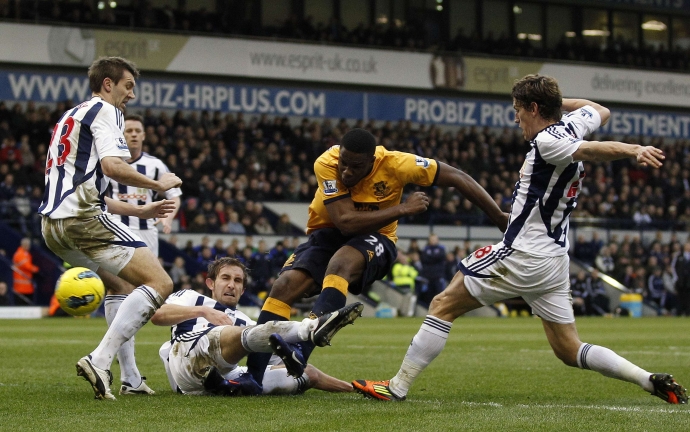 Единственный гол нападающего "Эвертон" Виктора Аничебе в матче с "Вест Бромвичем" (1:0). / Фото: © Reuters -