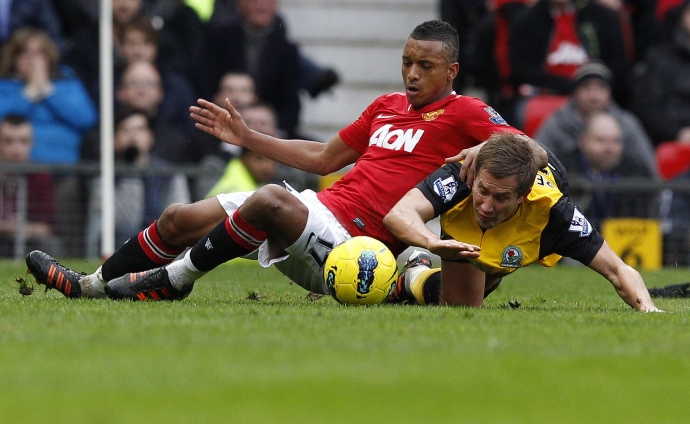 Полузащитник "Манчестер Юнайтед" Нани и полузащитник "Блэкберна" Мортен Педерсен (справа). Итоговый счёт матча 2:3. / Фото: © Reuters -