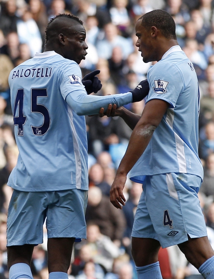 Защитник Венсан Компани и Марио Балотелли в матче чемпионата Англии. / Фото: © Reuters -