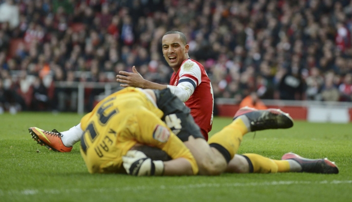 Тео Уолкотт в очередной раз не смог переиграть голкипера гостей Джейка Кина. / Фото: © Reuters -