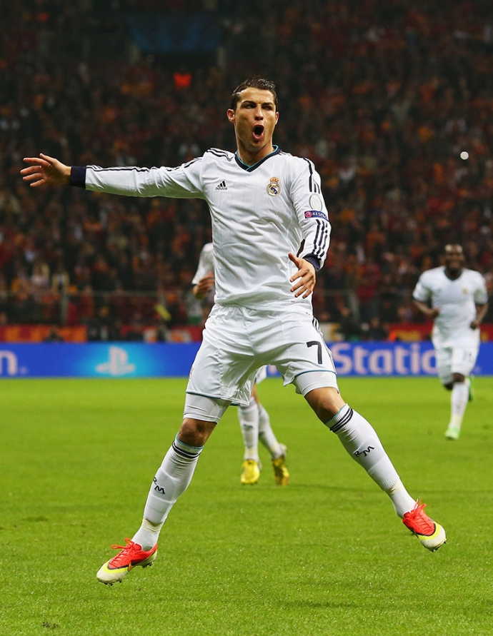 Ответная четвертьфинальная встреча Лиги чемпионов между турецким «Галатасараем» и мадридским «Реалом» (3:2). Форвард гостей Криштиану Роналду празднует мяч, забитый уже на восьмой минуте встречи. / Фото: © Reuters -