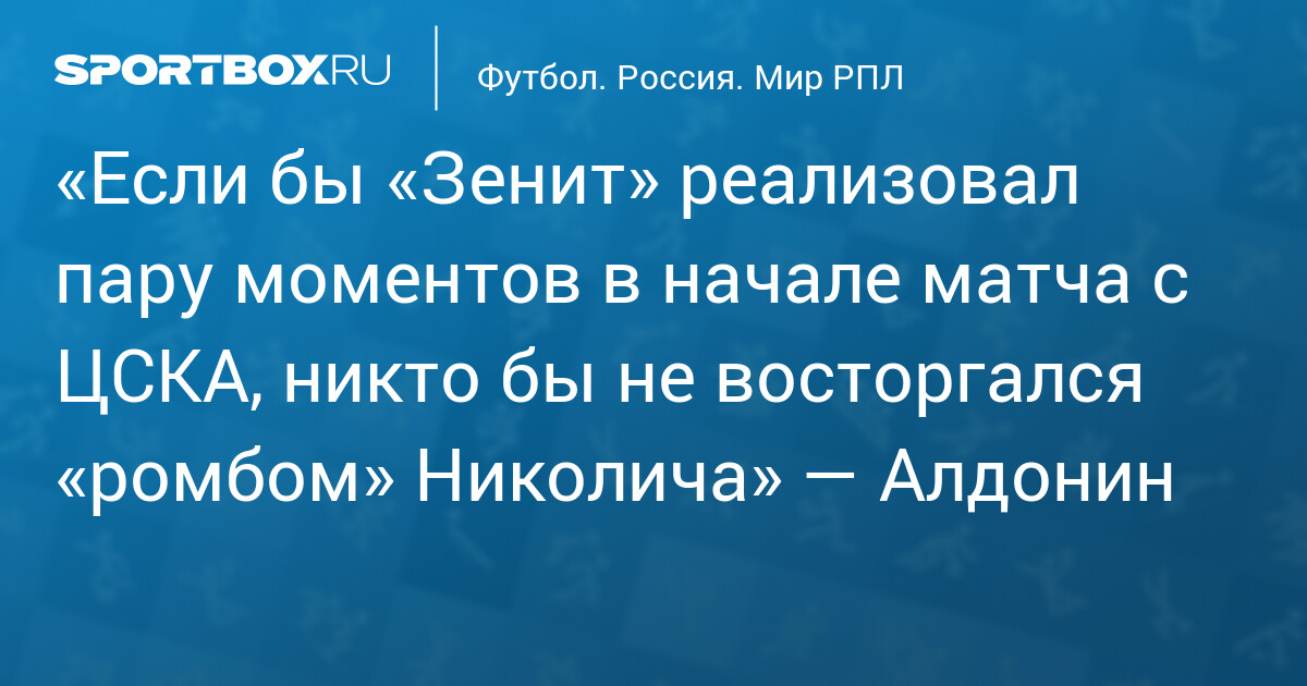 «Если бы «Зенит» реализовал пару моментов в начале матча с ЦСКА, никто бы не восторгался «ромбом» Николича» — Алдонин