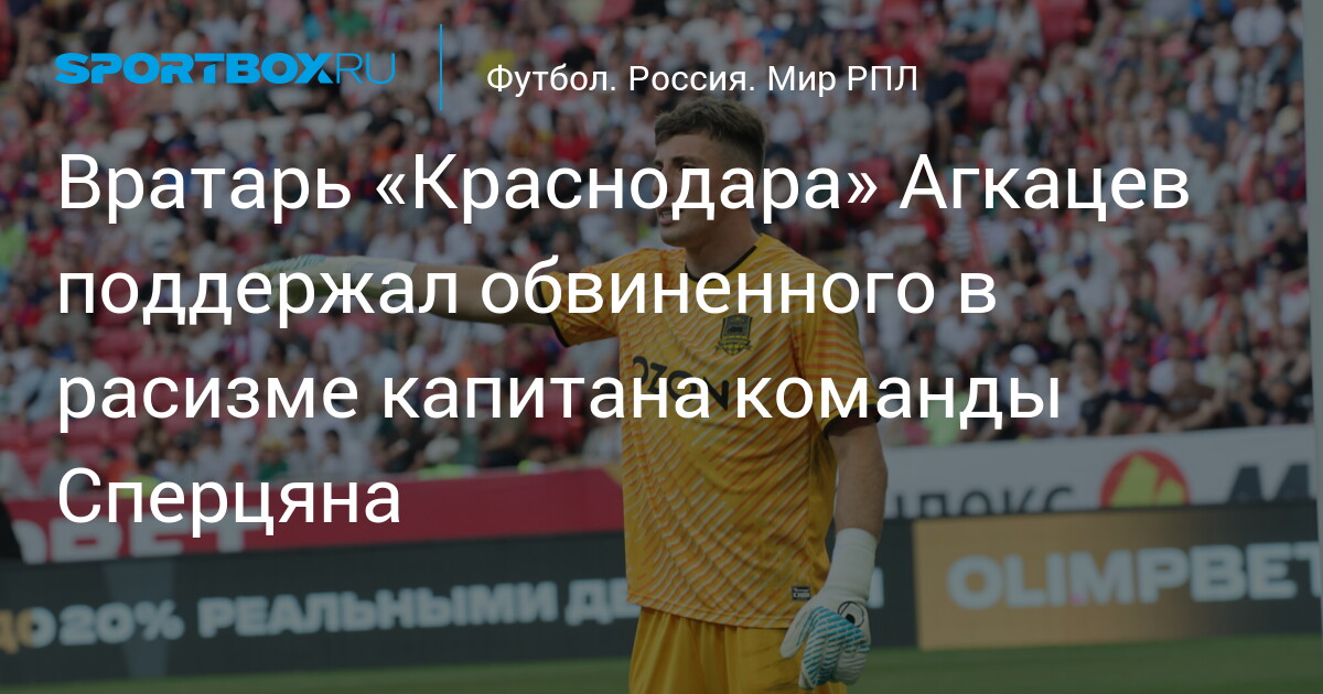Вратарь «Краснодара» Агкацев поддержал обвиненного в расизме капитана команды Сперцяна