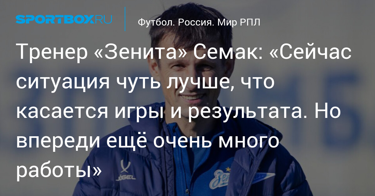 Тренер «Зенита» Семак: «Сейчас ситуация чуть лучше, что касается игры и результата. Но впереди ещё очень много работы»