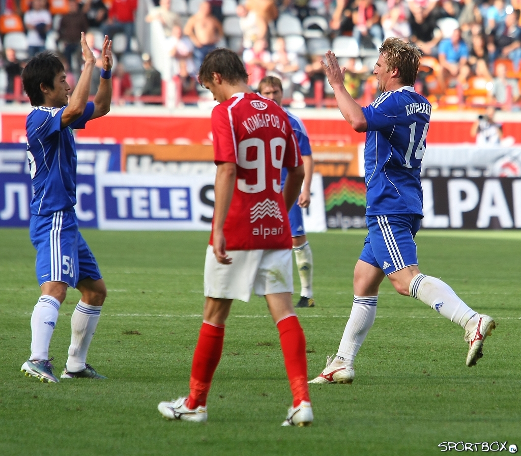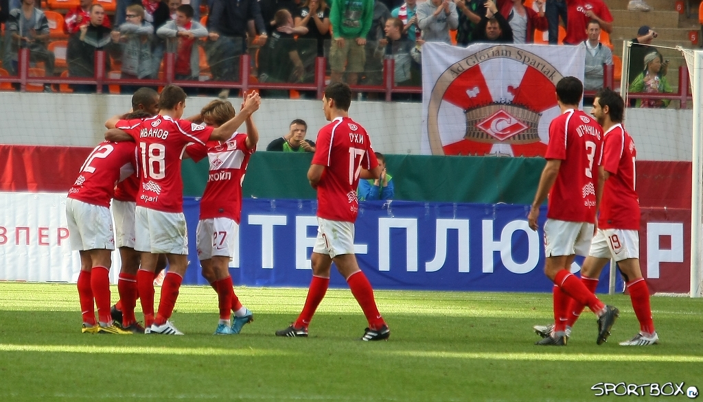 Игроки Спартака радуются забитому голу. / Фото: © Александр Мельников -