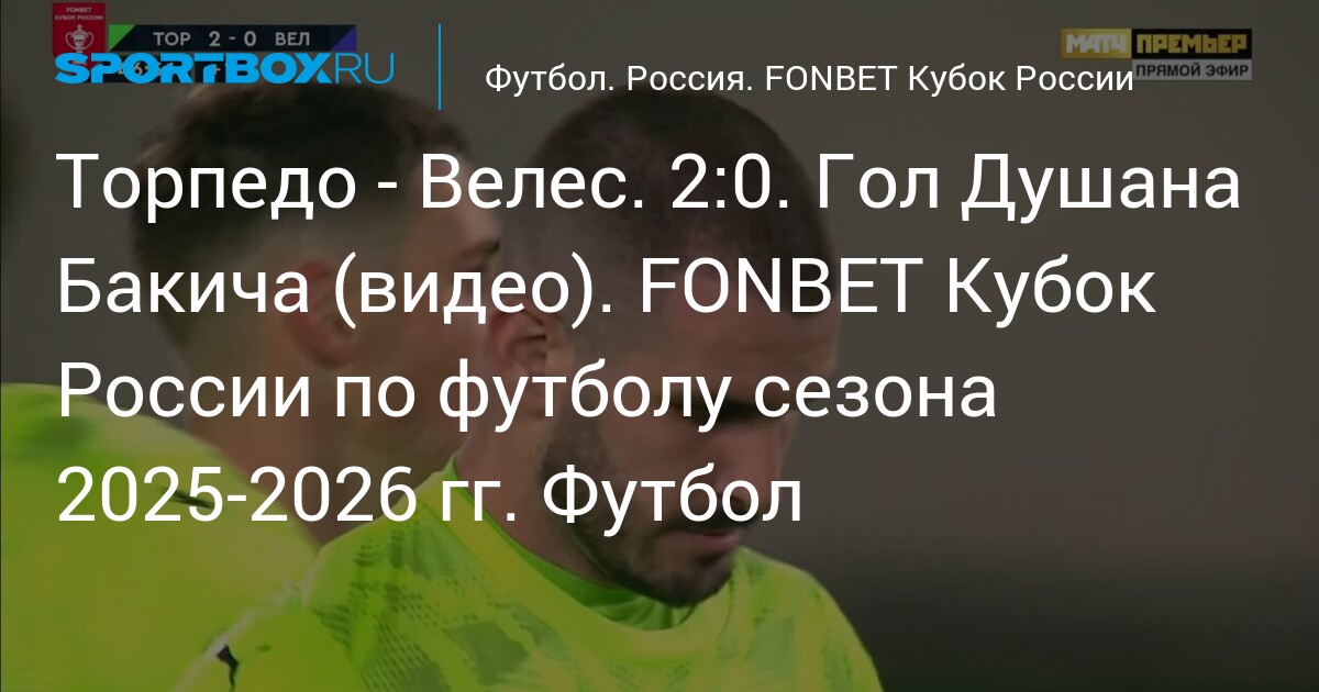 Торпедо - Велес. 2:0. Гол Душана Бакича (видео). FONBET Кубок России по футболу сезона 2025-2026 гг. Футбол