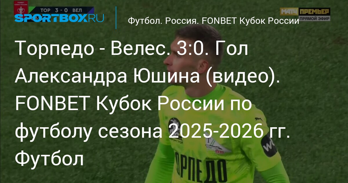 Торпедо - Велес. 3:0. Гол Александра Юшина (видео). FONBET Кубок России по футболу сезона 2025-2026 гг. Футбол