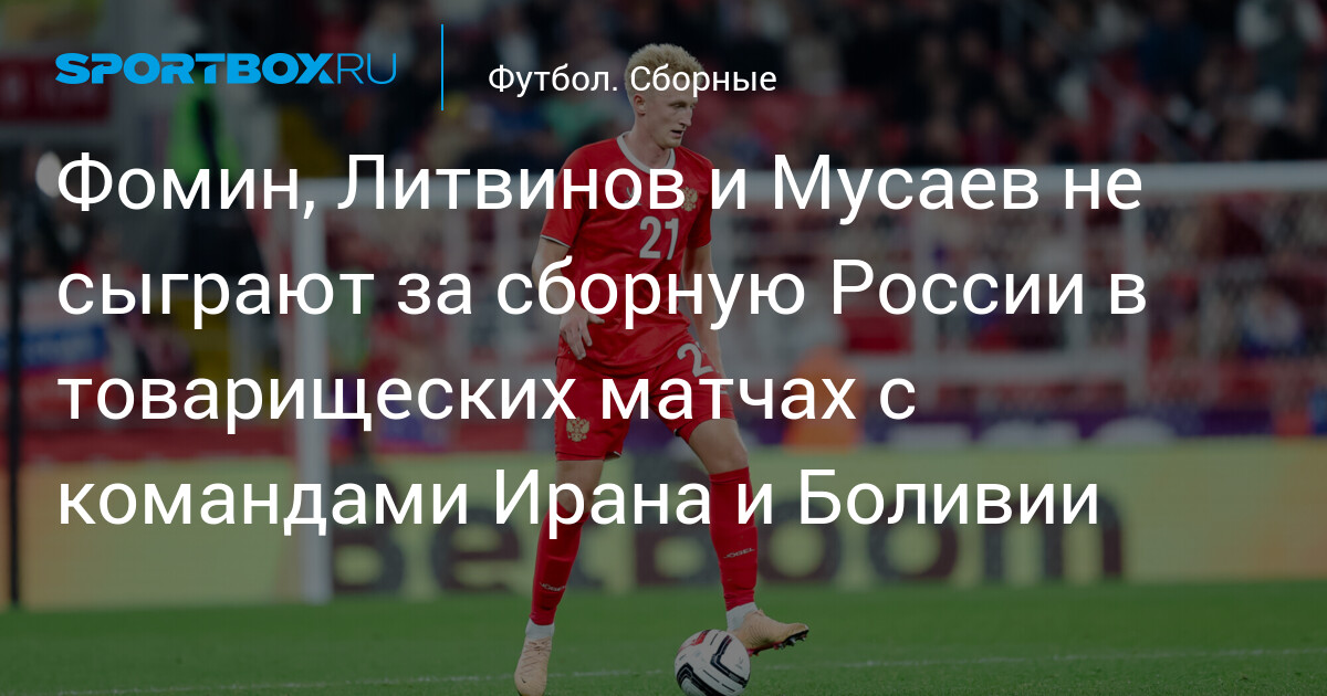 Полузащитник «Динамо» Даниил Фомин, защитник «Спартака» Руслан Литвинов и нападающий ЦСКА Тамерлан Мусаев не примут участия в товарищеских матчах сборной России с командами Ирана и Боливии, сообщает пресс‑служба Российского футбольного союза (РФС).
