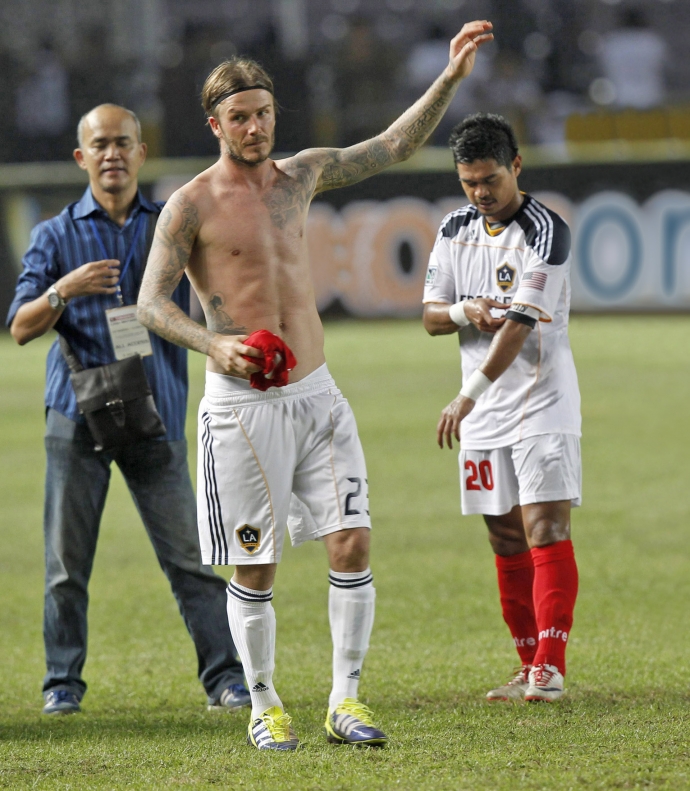 Кто ещё не видел татуировок полузащитника "Лос-Анджелес Гэлакси" Дэвида Бекхэма? Ещё остались места для новых татуировок. / Фото: © Reuters -