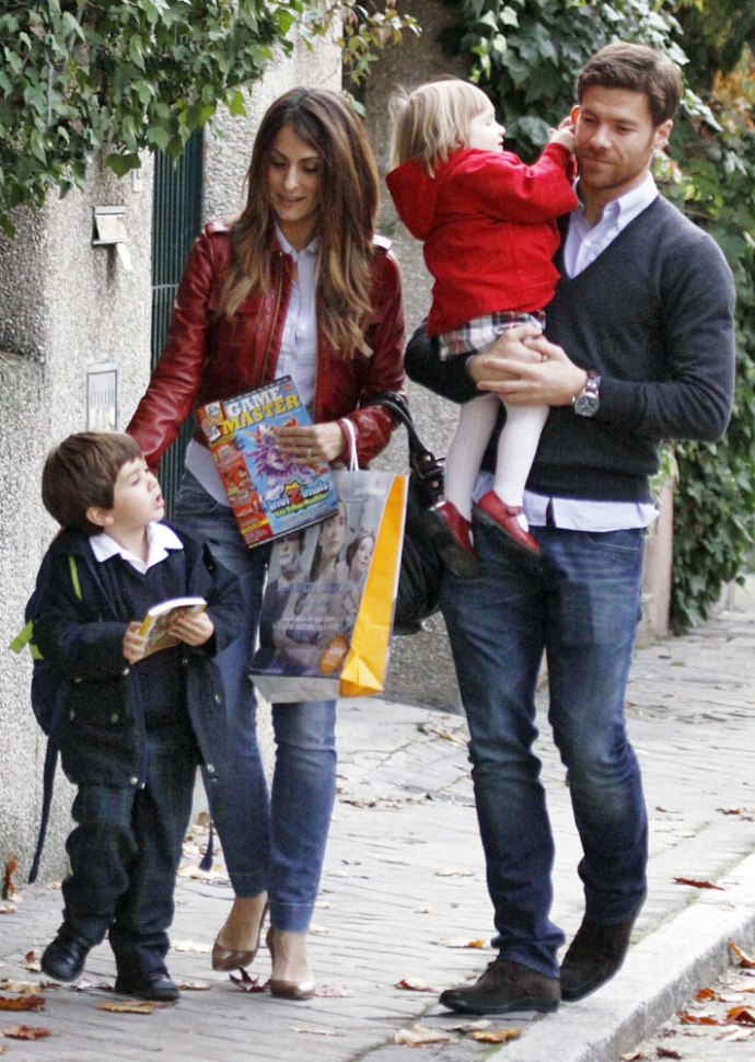 Полузащитник "Реала" Хавьер Алонсо с женой забирают детей из школы. / Фото: © Reuters -