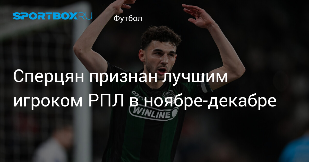 Полузащитник «Краснодара» Эдуард Сперцян признан лучшим игроком МИР Российской премьер‑лиги в ноябре‑декабре, сообщает пресс‑служба РПЛ.