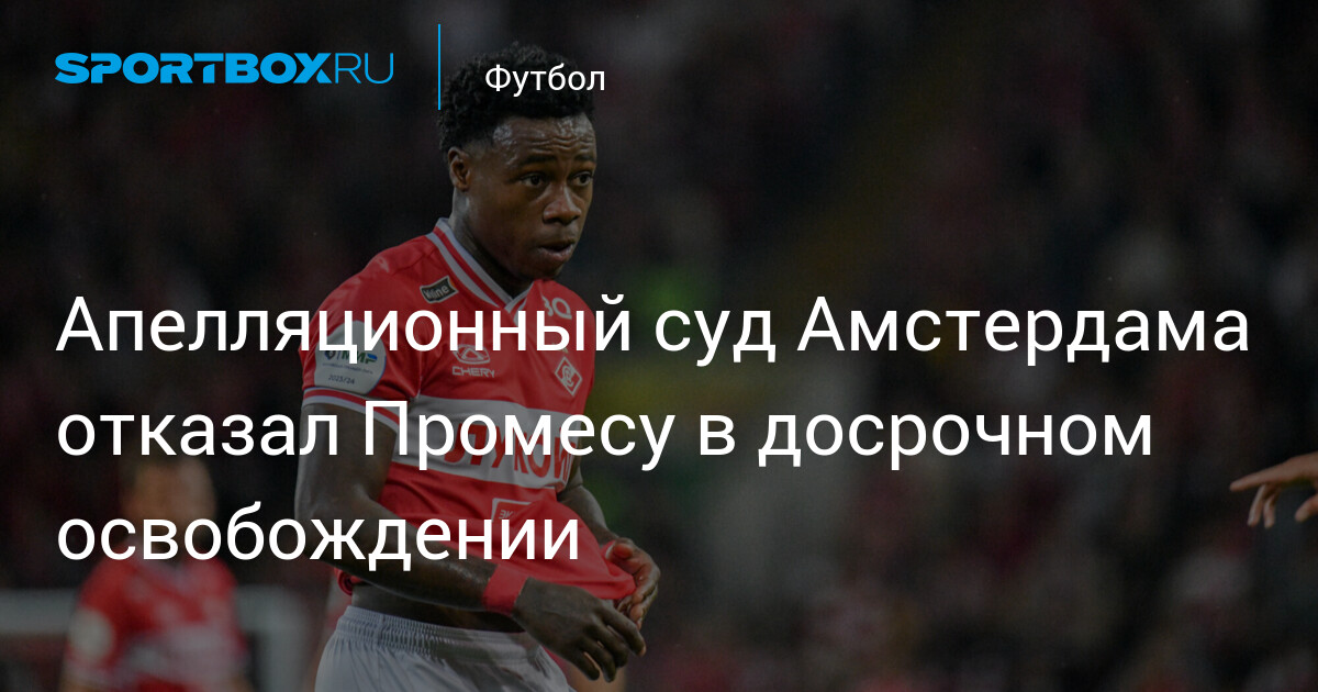 Апелляционный суд Амстердама отказал бывшему полузащитнику московского «Спартака» Квинси Промесу в досрочном освобождении, сообщает De Telegraaf.