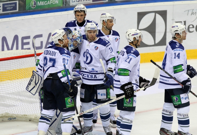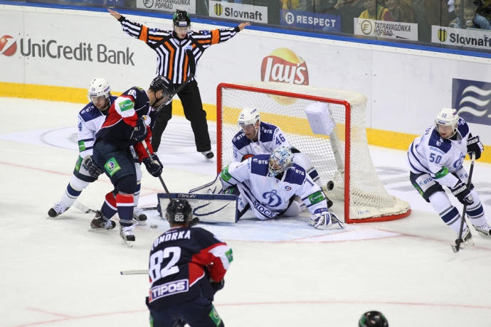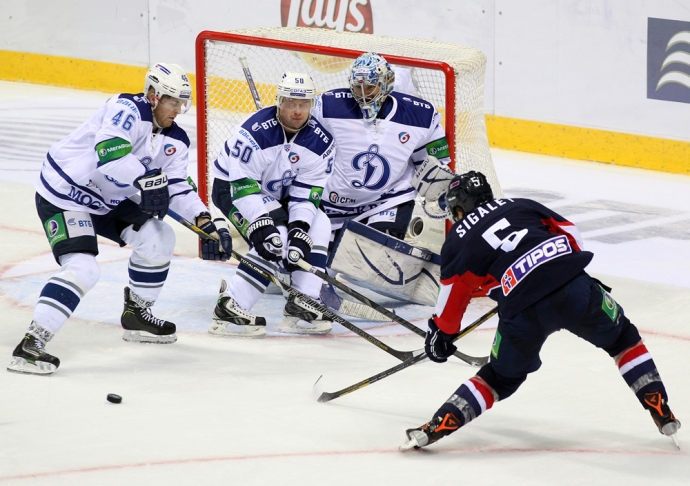 Московское «Динамо» одержало волевую победу над братиславским «Слованом» в очередном матче регулярного чемпионата КХЛ. / Фото: © Мариан Пеигер -