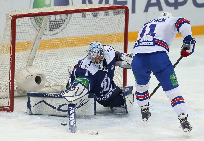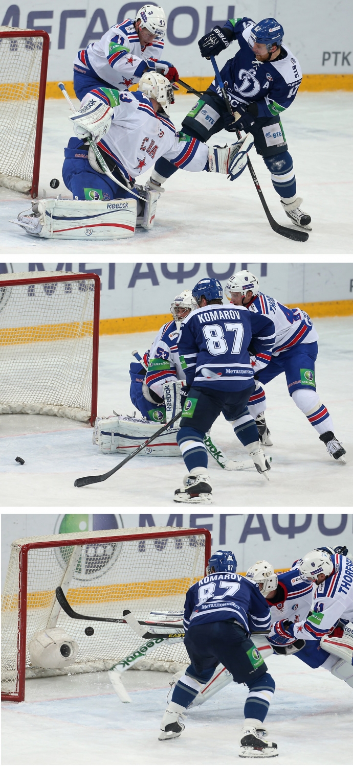 Гол нападающего СКА Патрика Торесена (справа) в ворота «Динамо» - 6:2. / Фото: © Василий Пономарев -