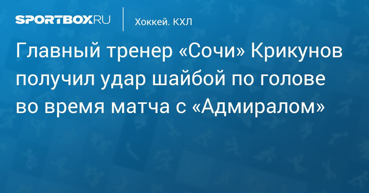 Шайба попала в голову главного тренера «Сочи» Владимира Крикунова во время матча регулярного сезона Фонбет Чемпионата КХЛ против владивостокского «Адмирала».
