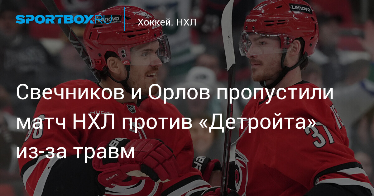 Российские хоккеисты «Каролина Харрикейнз» Андрей Свечников и Дмитрий Орлов пропустили домашний матч регулярного чемпионата НХЛ против «Детройт Ред Уингз» из‑за травм.