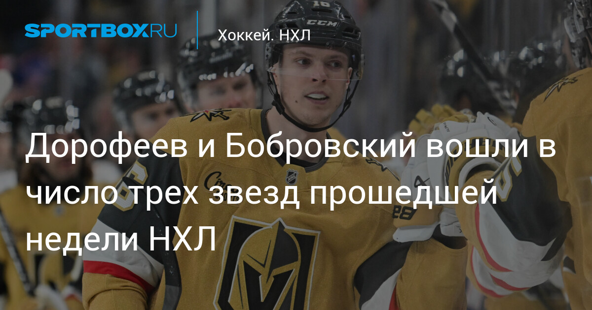 Форвард «Вегаса» Дорофеев был признан первой звездой, в трех сыгранных матчах он забросил 5 шайб, включая хет‑трик в ворота «Лос‑Анджелеса» 8 октября.