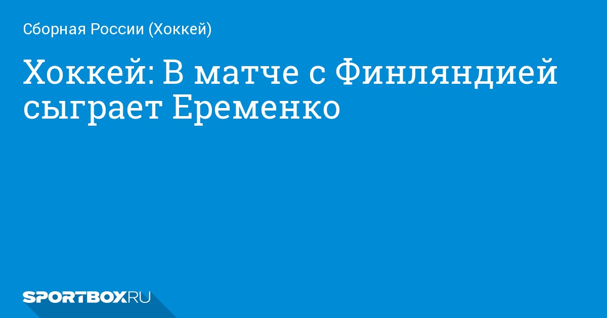 Хоккей: В матче с Финляндией сыграет Еременко