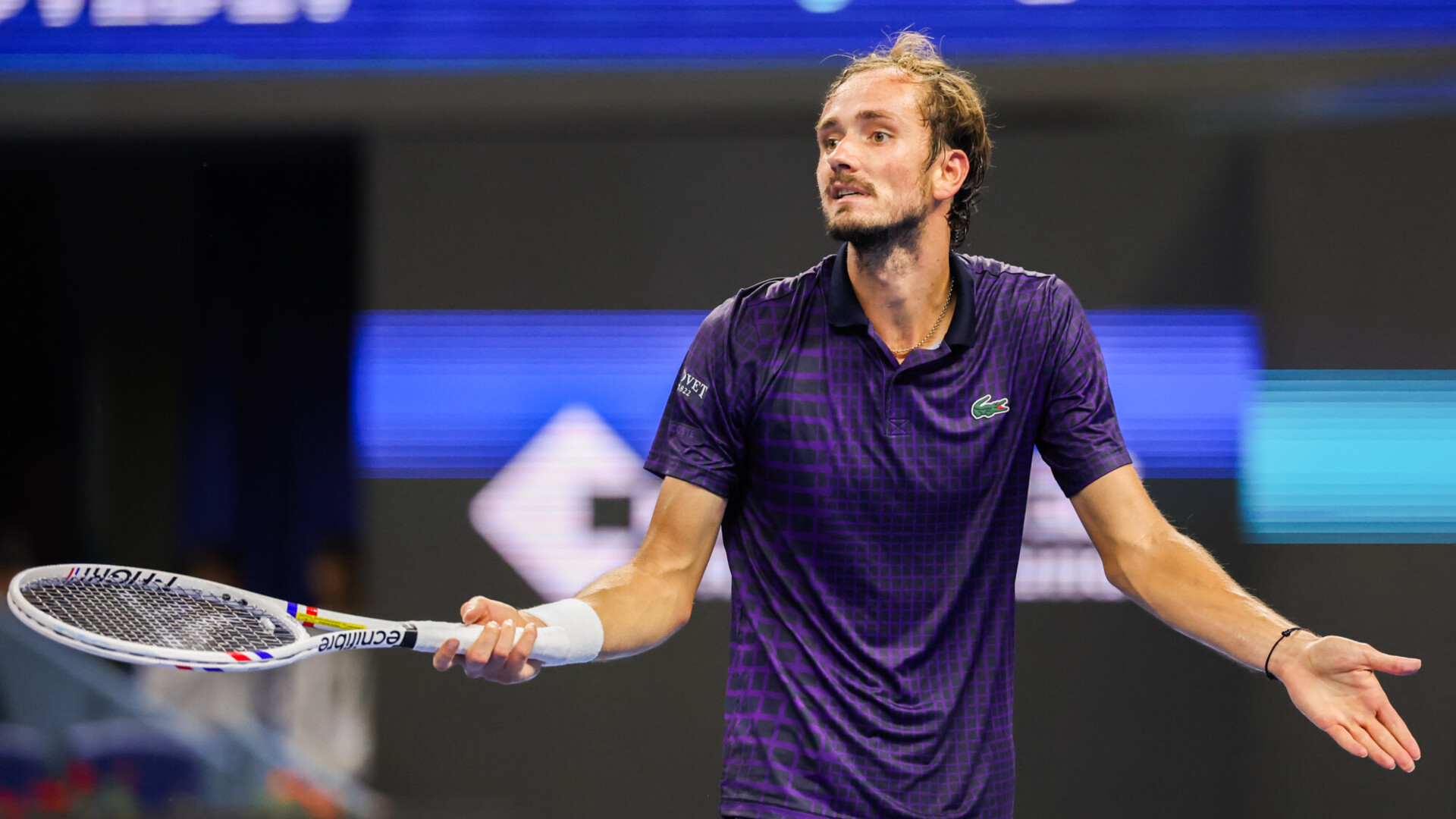 Судье Аделю Нуру не понравилась явная хромота Даниила и некоторые его розыгрыши. Он вынес россиянину предупреждение за отсутствие старания на корте. Это привело к скандалу. Наш игрок устроил разборки с появившимся на корте супервайзером.