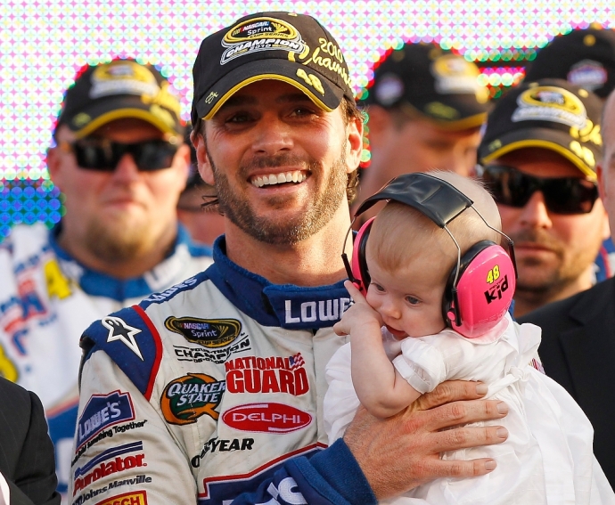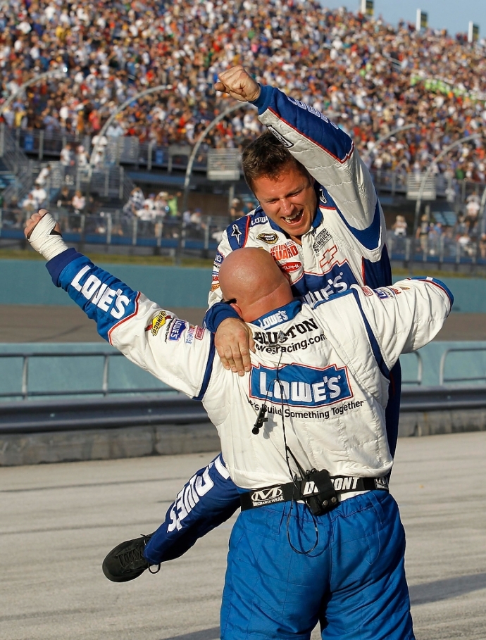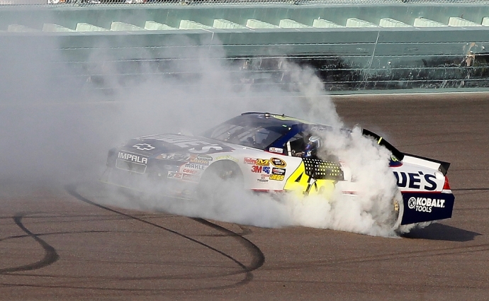 Джимми Джонсон празднует победу в гонке серии НАСКАР. / Фото: © Reuters
