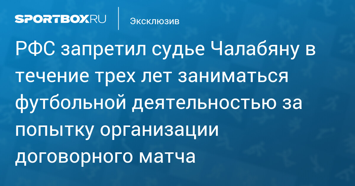 Контрольно‑дисциплинарный комитет Российского футбольного союза (КДК РФС) принял решение отстранить от любой футбольной деятельности арбитра Юношеской футбольной лиги (ЮФЛ) Хорена Чалабяна за попытку организации договорного матча в 2023 году.