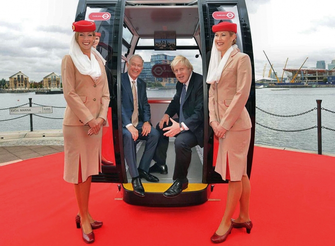 Мэр Лондона Борис Джонсон (справа) прокатился на канатной дороге через Темзу. / Фото: © Reuters -