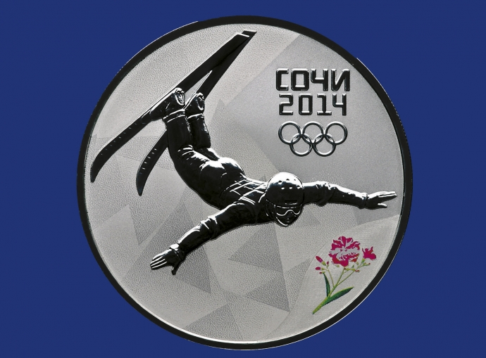 Памятная монета из серебра достоинством 3 рубля «Фристайл-14» по цене 3600 рублей. / Фото: © Оргкомитет «Сочи 2014» -