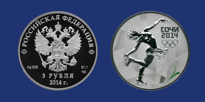 Первый тираж памятной монеты из серебра «Фигурное катание-14» достоинством 3 рубля вышел в 2011 году - 35 тысяч экземпляров. / Фото: © Оргкомитет «Сочи 2014» -