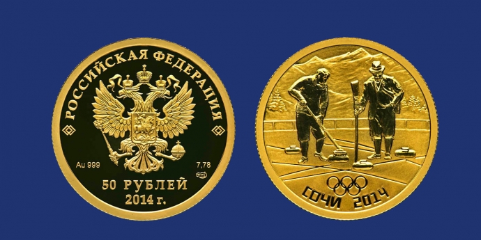 Памятная монета из золота «Керлинг-14» номиналом 50 рублей стоит 19700 рублей. / Фото: © Оргкомитет «Сочи 2014» -