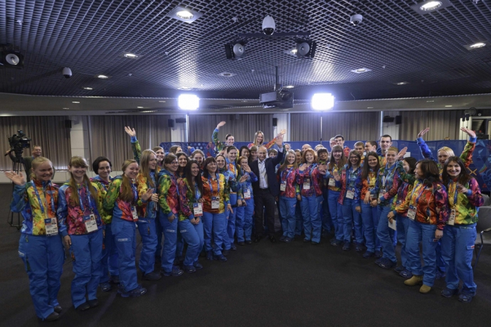 Президент России Владимир Путин провел встречу с волонтерами Олимпийских и Паралимпийских игр в Сочи, пожелав им удачи в работе со спортсменами. / Фото: © Reuters -