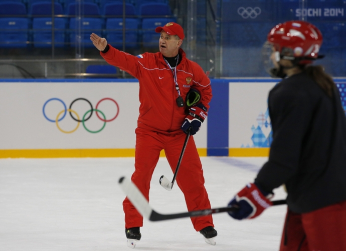 Главный тренер женской сборной России по хоккею Михаил Чеканов (слева). / Фото: © Reuters -