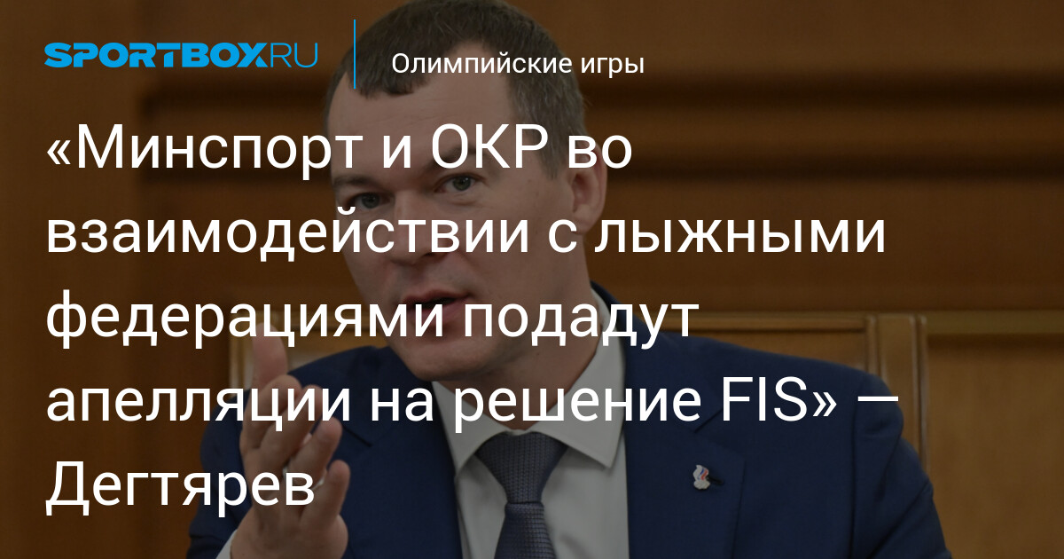 Министерство спорта РФ и Олимпийский комитет России (ОКР) в кратчайшие сроки подадут апелляции на решение Международной федерации лыжного спорта и сноуборда (FIS) о продлении отстранения российских спортсменов, заявил «Матч ТВ» министр спорта и глава ОКР Михаил Дегтярев.